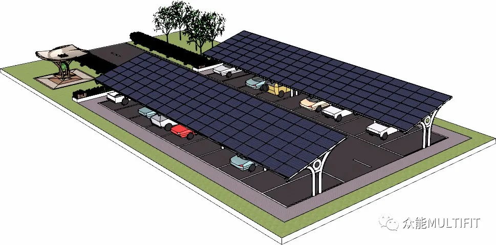 With people’s attention to environmental protection, solar photovoltaic power generation is gradually applied to all kinds of places where the sun can shine, such as “photovoltaic shed”. With the gradual replacement of traditional cars by electric vehicles, photovoltaic shed has become a very necessary fashion favorite. It can not only shade and insulate the car, but also charge the car. How cool is it? Let’s have a look~~~